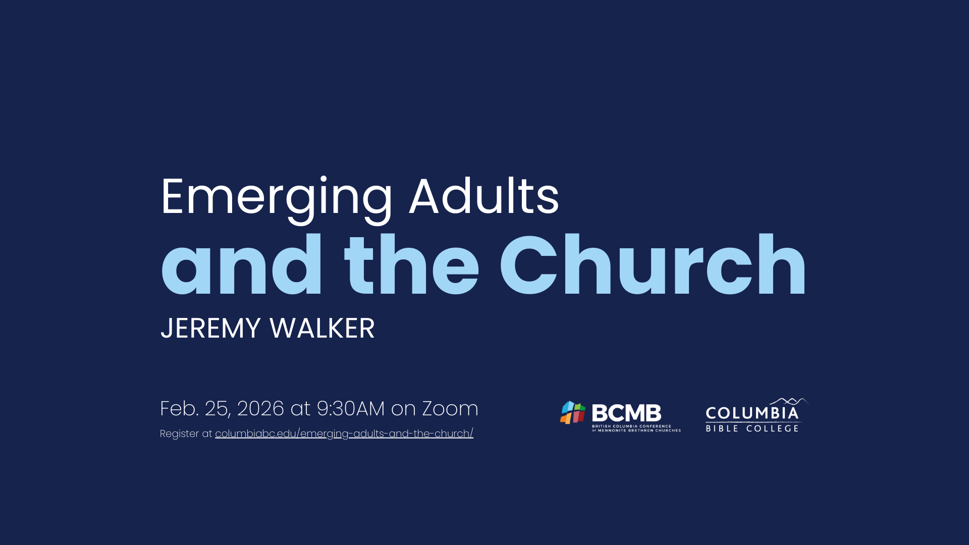 Pastors and Church Leaders across Canada are invited to join CBC online and hear from Jeremy Walker, Director of the QUEST discipleship program at CBC, about his research on Persistent Faith in Emerging Adults. CBC President Steve Brown will also share about how God is at work at CBC.